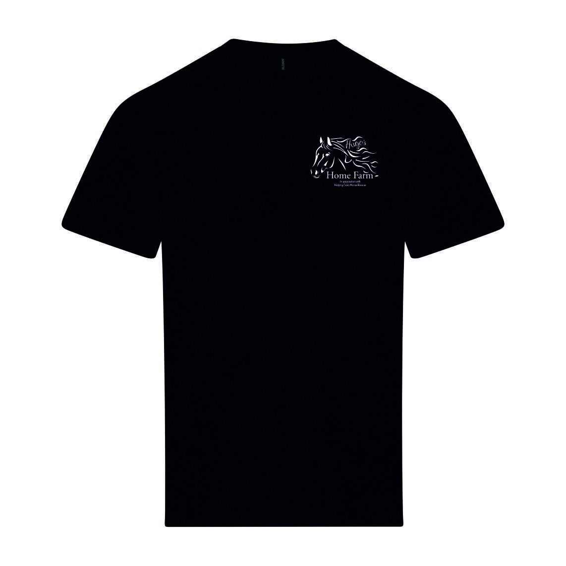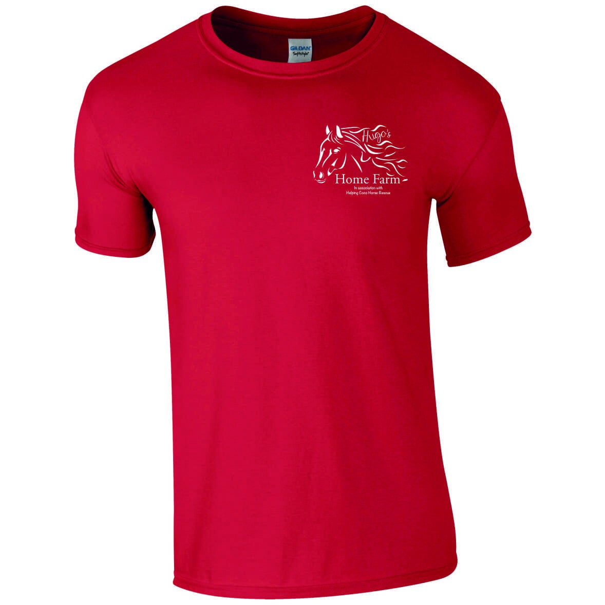 Hugos Farm T-Shirt with printed logo to chest. Soft ringspun fabric feels great against your skin. Non-topstitched, classic width, rib collar. Taped neck and shoulders for comfort and durability. Modern classic fit, tubular body.